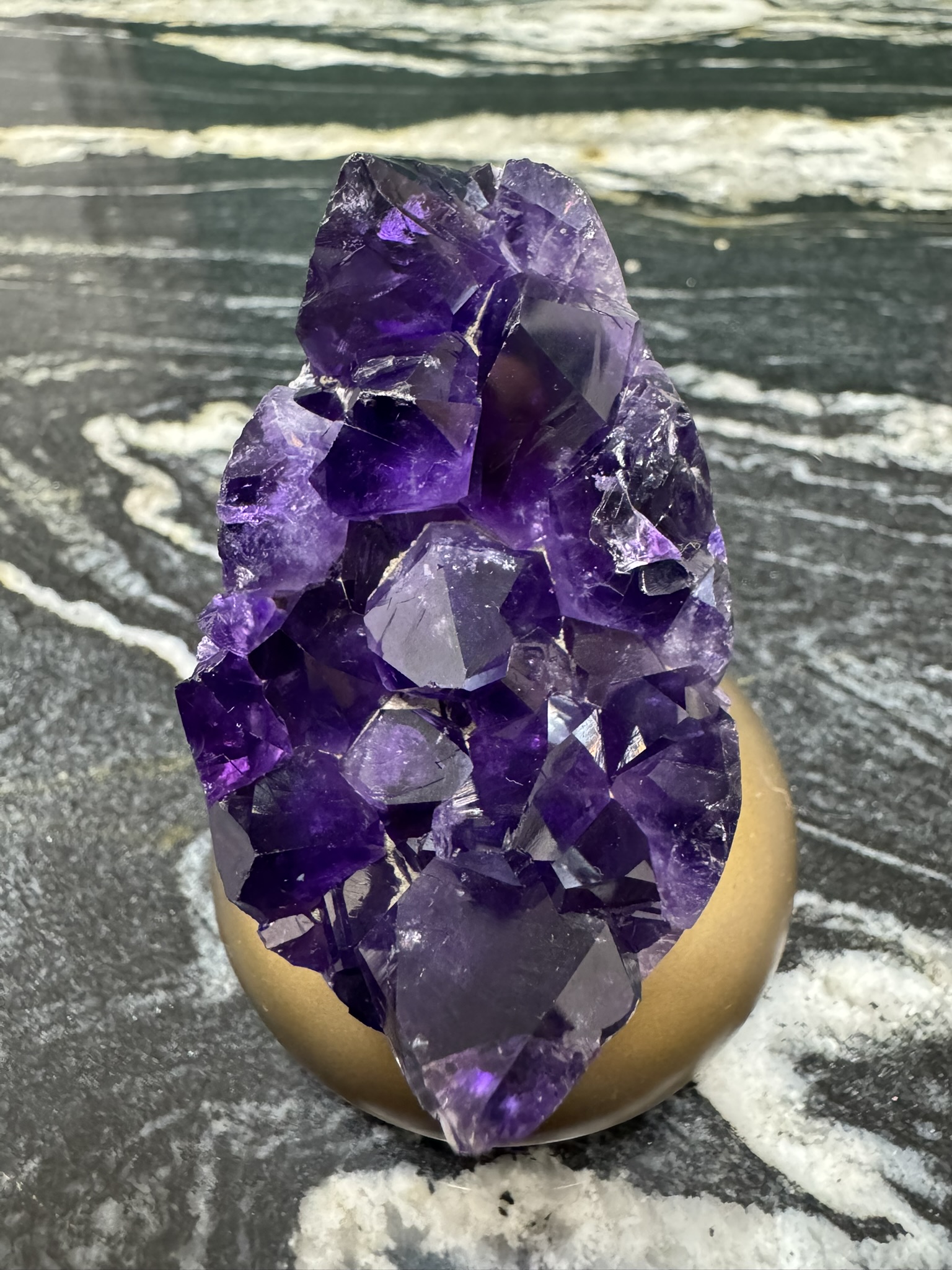 Améthyste du Brésil taillée en forme d’œuf, accompagnée de son socle. Elle vous apportera un bien-être intérieur, à déposer auprès de vous, dans un bureau, une chambre à coucher, un salon. Elle a un effet calmant et apaisant. Sa douceur développe la paix intérieure, dissipe les colères liées aux douleurs du passé. Excellente lors de Méditation. Développe l’instinct artistique et créatif.