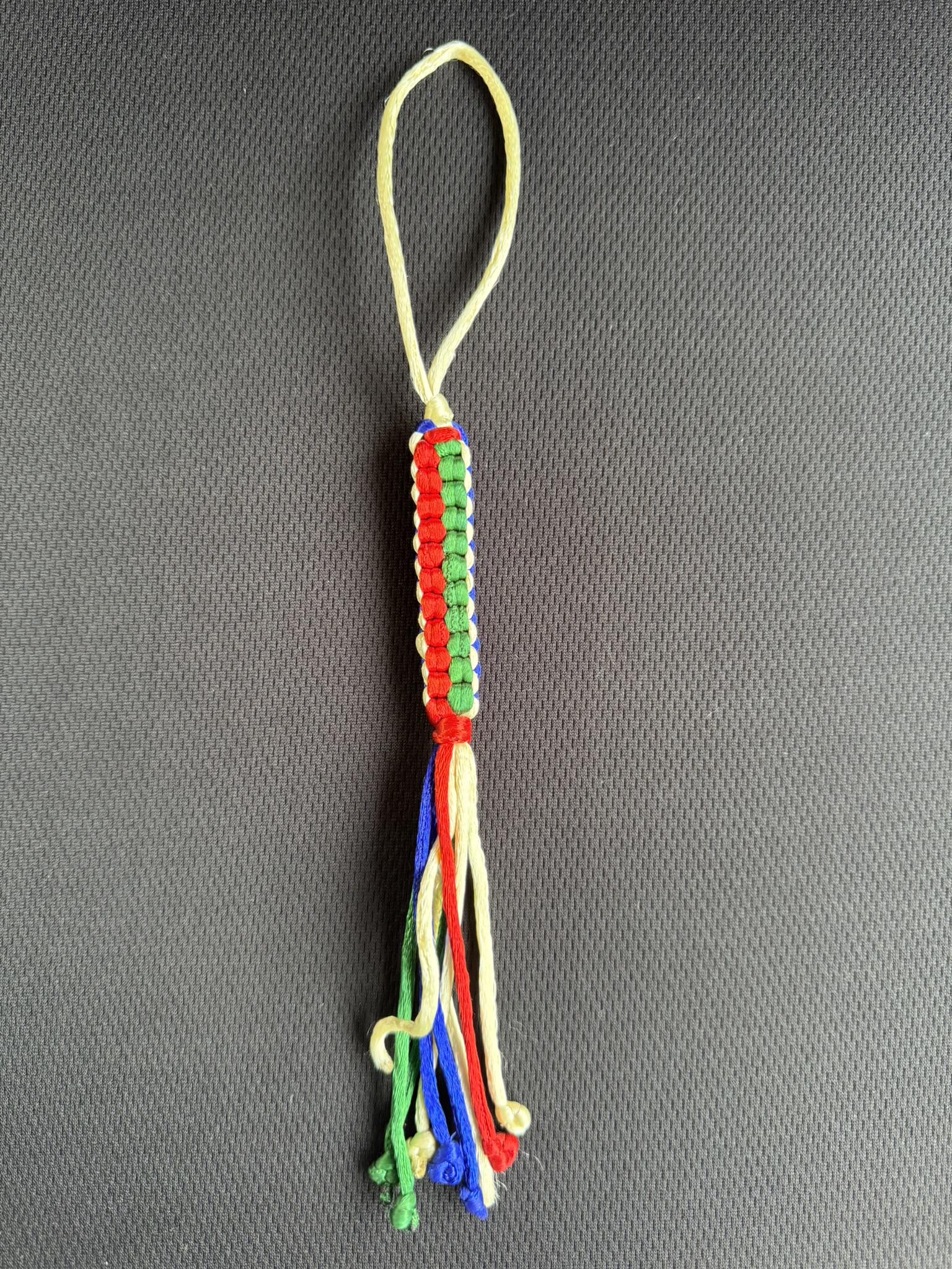 Fabriqué à la main cette très belle suspension sera un objet que vous pouvez accrocher dans votre voiture, avec vos clef ou tous simplement sur à la fermeture de votre sac à main ou votre sac à dos. Couleurs, vert, blanc, rouge, bleu.